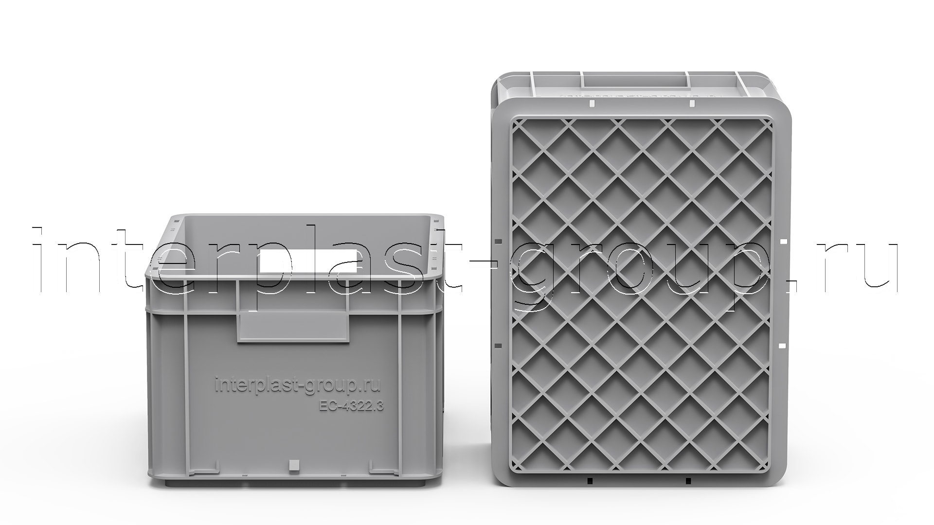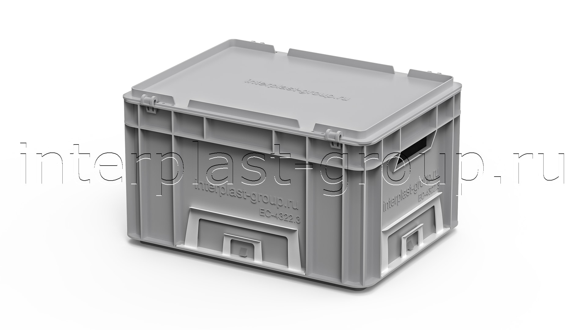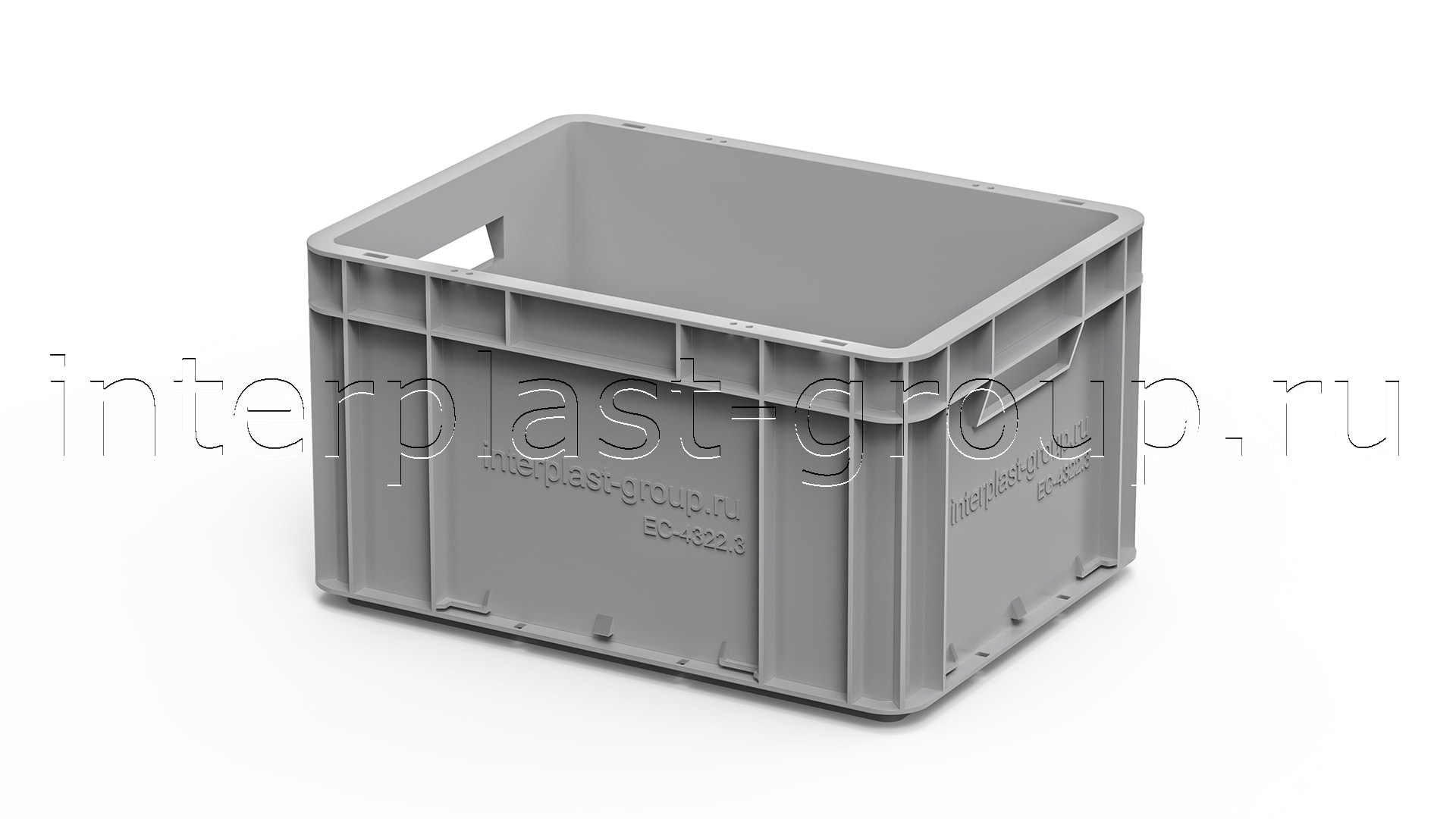 Евроконтейнер открытые ручки/усиленное дно (серый), 400x300x220 мм