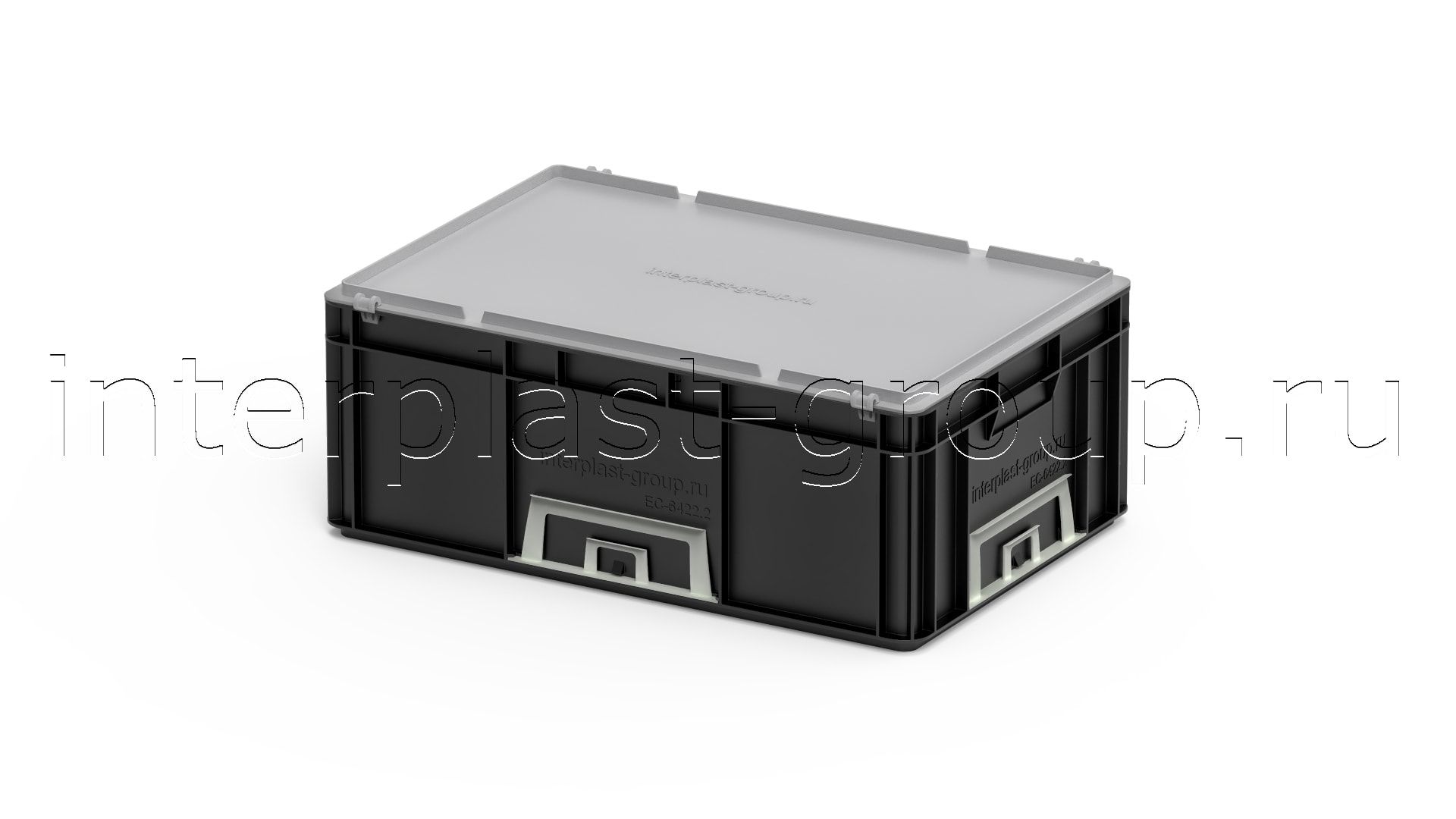 Евроконтейнер закрытые ручки/сплошное дно (черный), 600x400x220 мм