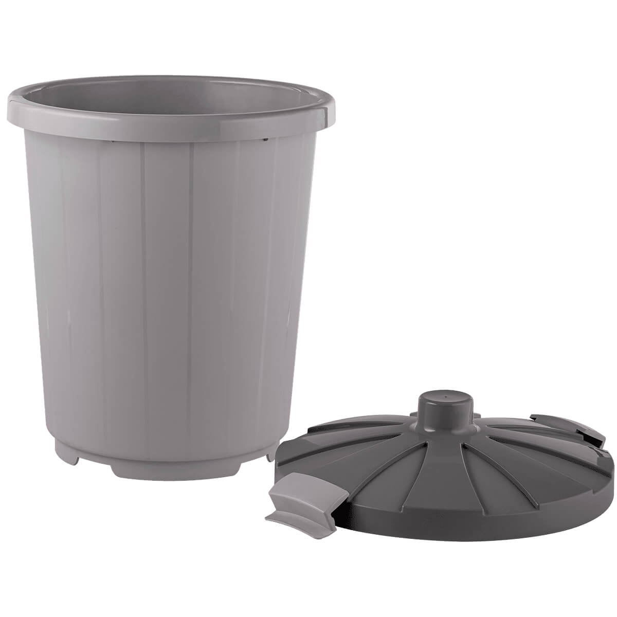 Удобная крышка с защелками обеспечивает безопасное и герметичное хранение отходов. Стильный серый цвет придает баку современный вид, что делает его привлекательным элементом для вашего дома, офиса или предприятия.